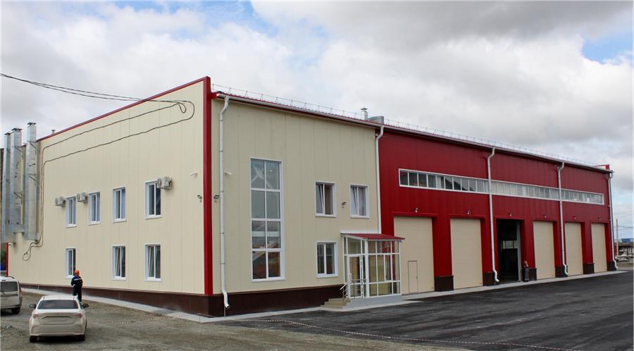 Стены и кровля здания выполнены из сэндвич-панелей с утеплителем, на ворота предусмотрена тепловая завеса, что обеспечит сохранность тепла в холодное время на уровне не менее +18 градусов. Система вентиляции приточно-вытяжная с автоматическим управлением. Общая площадь здания гаража составляет 1450 квадратных метров.