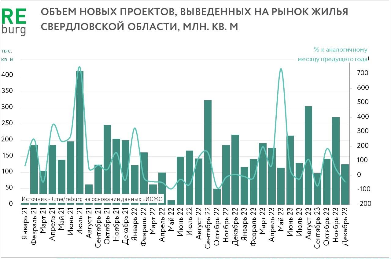 Это на 19% больше, чем в 2022 году. Свердловские девелоперы в 2023 году запустили новых проектов более чем на 2 млн кв.