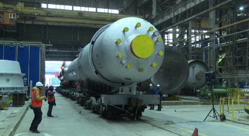 Длинною, почти в 50 метров — это примерно три железнодорожных вагона, первый полностью российский реактор сейчас отправляется в Омск. И уже в следующем году он приступит к работе.