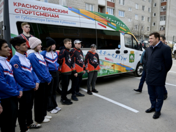 Губернатор Свердловской области Евгений Куйвашев в ходе рабочей поездки в Красноуфимск 17 апреля передал спортсменам, которые занимаются в местном физкультурного-оздоровительном центре «Сокол», автобус для поездки на соревнования.