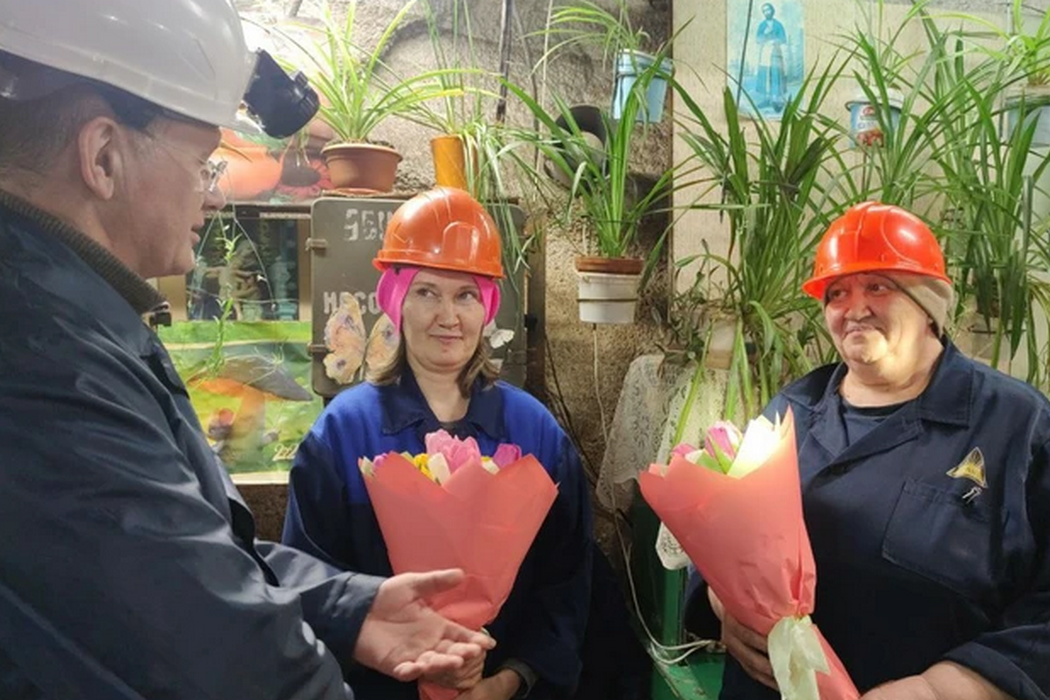 В Березовском руднике, где оказался мэр с букетами цветов, он сказал, что многие годы в дни государственных праздников поздравляет тех, кто проводит свой выходной на работе. На 8 Марта женщины достойны внимания и цветов, особенно те, кто выбрал непростой шахтерский путь.