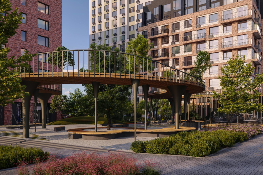 «По задумке архитекторов формы генерального плана и малые архитектурные формы будут отражать деятельность заводов. Генеральная визуальная линия – раскаленный металл. Архитектурные конструкции: скамейки, беседки, арки, подвесные кресла, спортивные зоны и мосты будут мягко перетекать друг из друга, как горячий тягучий металл. Многие малые архитектурные формы будут похожи на инженерные сооружения», – рассказали ИА «Уральский меридиан» в пресс-службе ГК «Страна Девелопмент»