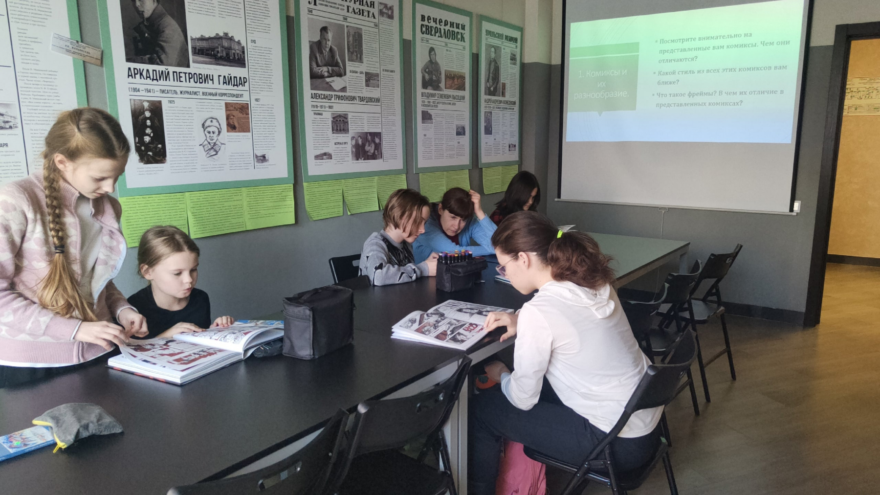 На мероприятии ребята рассказали о себе и о своём опыте создания комиксов. На вводном занятии участники узнали о теории комикса, а также изучили целых пять, казалось бы похожих, но очень разных изданий, и вывели как сходства так и отличия.