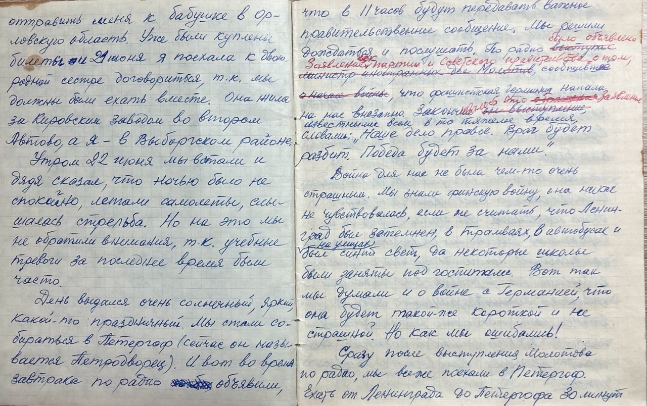 Две сестры Нина и Люся пережили один из самых страшных периодов Великой Отечественной войны — блокаду Ленинграда. Потеряв отца и мать, среднюю сестру Галю, девочки выжили, выстояли и до недавнего времени жили и трудились в г. Новоуральске. В семье Беляевых хранится старая тетрадь с воспоминаниями старшей сестры Нины Ивановны Витюговой о тех событиях.