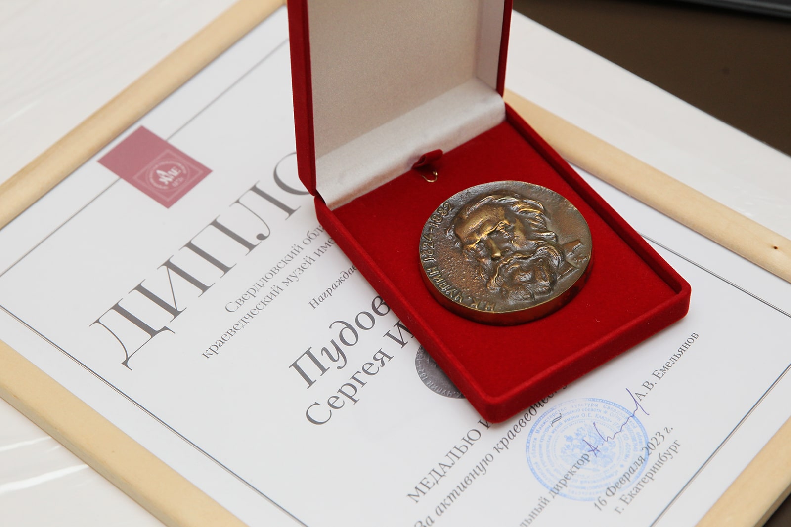 Имя нового лауреата Медали имени Наркиза Чупина неделей ранее стало известно после заседания Научно-методического совета Свердловского областного краеведческого музея – о нем и о самой награде мы подробнее рассказали в этой новости .