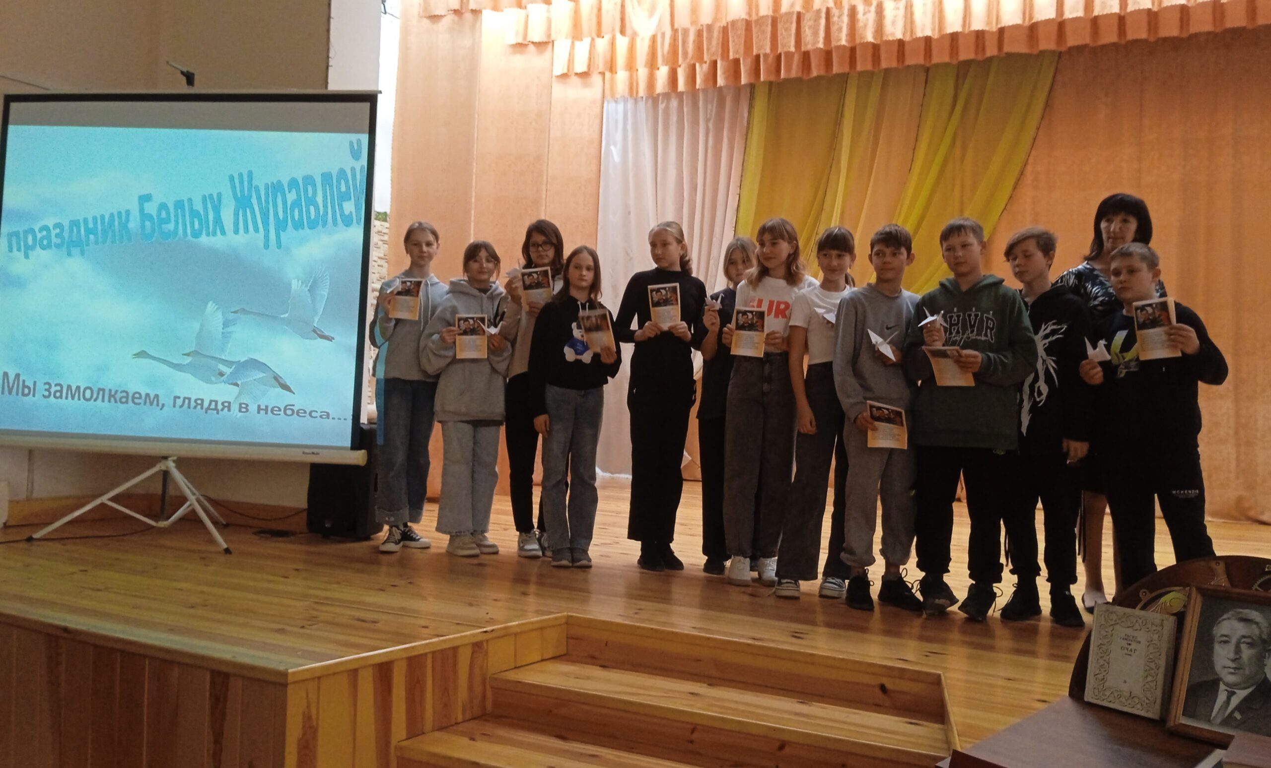 Накануне Дня белых журавлей — праздника поэзии, духовности, а также Дня памяти погибших солдат обучающиеся МАОУ Фабричной СОШ, посетили библиотеку при Досуговом центре пос. Фабричное и приняли участие в празднике «Белых журавлей». Ребята узнали, почему именно белые журавли стали символом этого праздника. Зазвучавшая песня «Журавли» стала песней-реквиемом, гимном памяти погибшим во время Великой Отечественной войны солдатам, которых авторы сравнивали с клином летящих журавлей, а впоследствии — и жертвам терроризма, Чернобыльской катастрофы, военных конфликтов. И в сегодняшние драматические времена песня, как никогда, значима для всего мира. Заключительным этапом мероприятия стал мастер-класс по изготовлению белых журавлей в технике оригами.