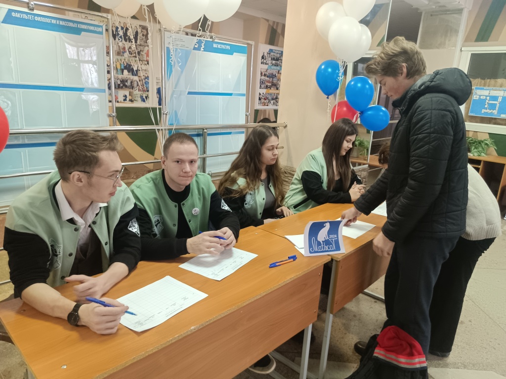 30 ноября на факультете естествознания, математики и информатики в канун Всероссийского Дня математика уже в седьмой раз была организована площадка Всероссийского и международного образовательно-развлекательного флешмоба «Контрольная по математике для взрослых и не только MathCat`2024», являющегося перечневым мероприятием Министерства просвещения РФ. Цель акции – повышение популярности математических знаний среди молодежи.