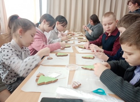 Накануне праздника Нового года по старому стилю в Кедровской сельской библиотеке-клубе ребята из третьего класса общеобразовательной школы № 24 побывали на занятии по росписи пряников сахарной глазурью.