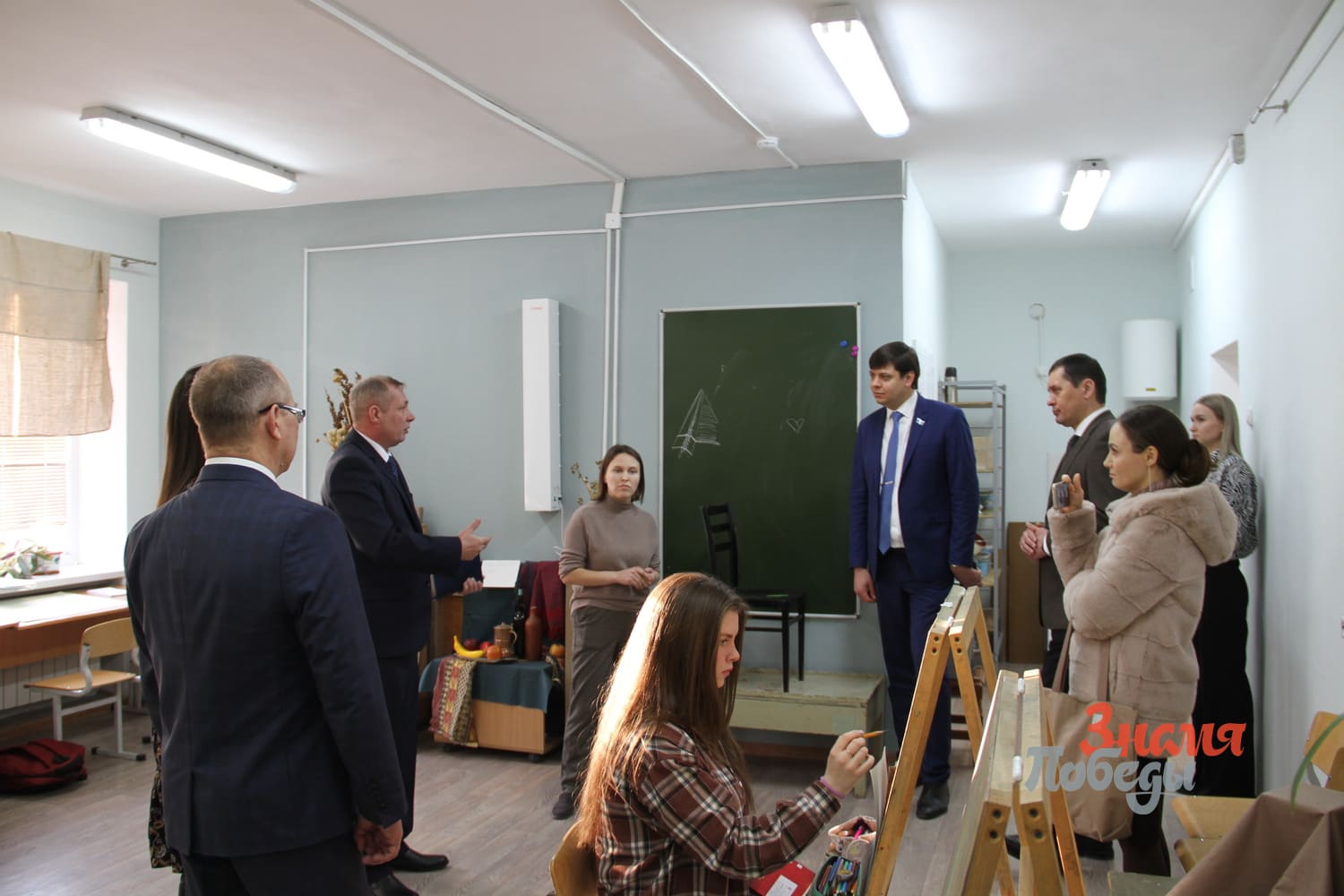 Вторым пунктом визита стала детская школа искусств, где буквально пару недель назад завершился ремонт учебных классов и коридора. Педагоги обустраивают кабинеты, а директор Дмитрий Осипов готовится к продолжению ремонта: