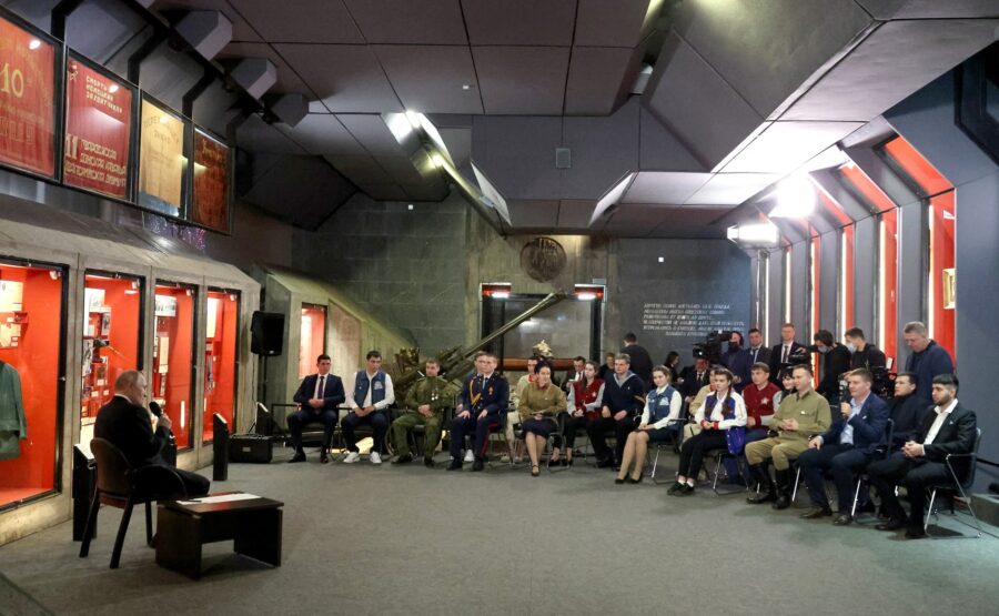 Глава государства отметил, что на встрече в музее-панораме «Сталинградская битва» собрались молодые люди, чья работа имеет чрезвычайно важное значение. Он попросил ребят продолжать эту деятельность.