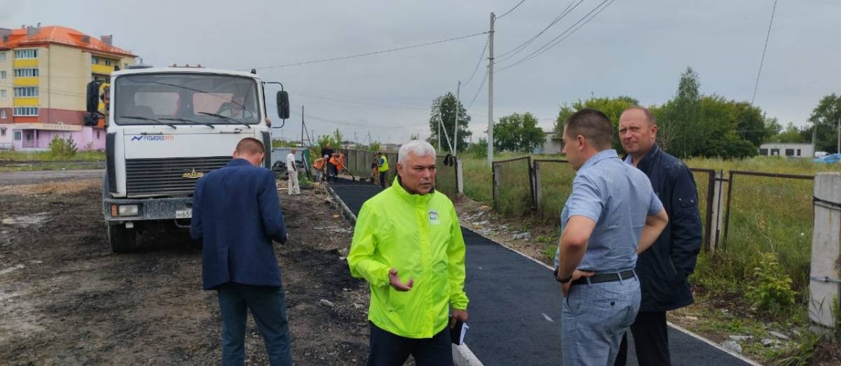 После совещания выехали для осмотра объектов, выполняемых в рамках заключенных контрактов. Мониторинговая группа провела осмотр хода выполнения работ по обустройству тротуаров по ул. Первомайской и ул. Садовой. Особая актуальность тротуара по ул. Садовой обусловлена тем, что он обеспечивает сообщения со школами № 1, 2 и 3. Работы в стадии завершения.