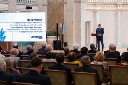 ЕКАТЕРИНБУРГ. Губернатор Евгений Куйвашев сегодня, в День образования Свердловской области, принял участие в церемонии награждения лауреатов конкурса «Достояние Среднего Урала».