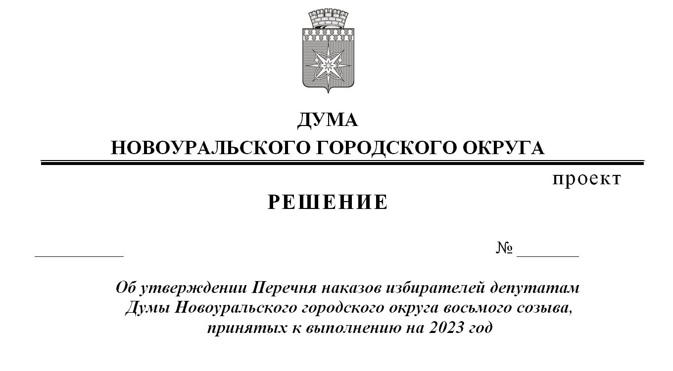 Новоуральского городского округа намерены утвердить Перечень наказов