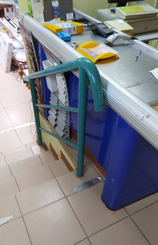 В подвале вообще опасная зона для клиентов. Я уже продавцу не раз говорила, что чуть не оступилась при расчёте. Кассир сидит за прилавком почти на лестничной площадке. Где и кто такой проект сделал? Где техника безопасности? До случая? Вот он и случился.