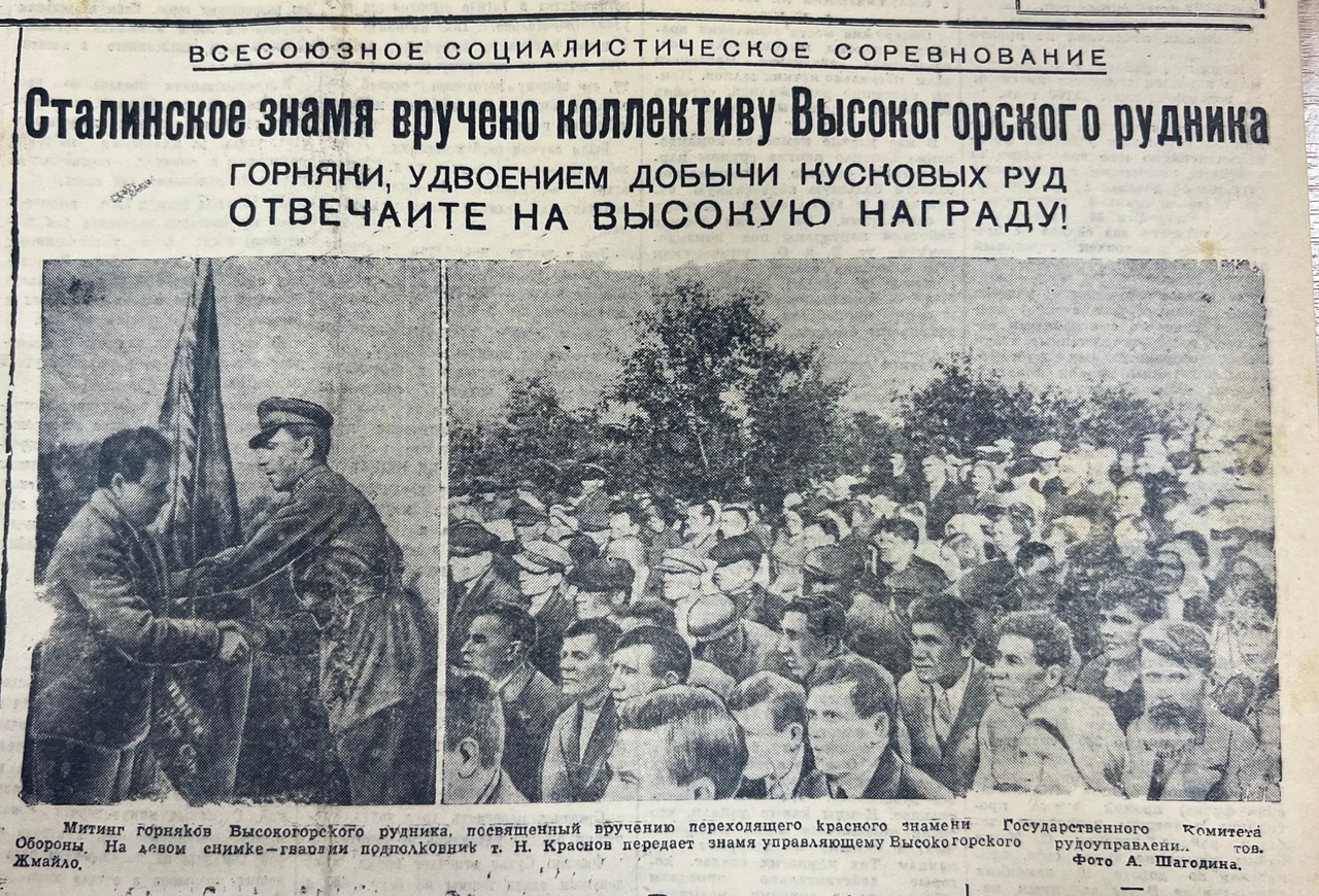 Решением ВЦСПС и наркомата Высокогорскому железному руднику, занявшему первое место в соревновании, присуждено переходящее красное знамя Государственного Комитета Обороны и присвоено звание «Лучший рудник Советского Союза». Вторые премии получили Тагильский коксовый завод и завод, где парторгом был тов. Ольяненко. Третья премия досталась доменному цеху Ново-Тагильского завода.