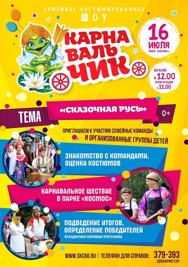 Информация для участников Карнавальчика. 16 июля с 11.00 до 11.45 на площадке у ДК «Юность» состоится дополнительная регистрация участников, а также просмотр и оценка команд, прошедших предварительную регистрацию.