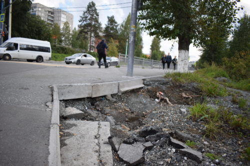 — Беспокоит, что разрушается пешеходная дорожка между 9 и 10 микрорайонами. В районе светофора размыло до такой степени, что видно корни деревьев. А если она обрушится? – спрашивает жительница Качканара.