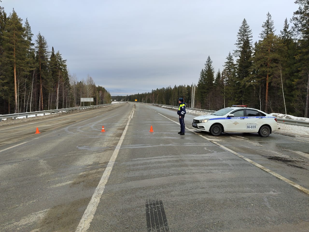 1/4Перекрытый участок трассы / отдел пропаганды ГИБДД по Нижнему Тагилу