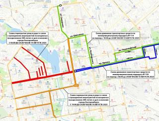 - движение по маршруту № 114 будет осуществляться: в прямом направлении на участке маршрута от остановки «Восточная» до остановки «Дом музыки» по проспекту Ленина, улице Луначарского, улице Шевченко, улице Якова Свердлова, далее по существующему маршруту, отменяются остановки «Оперный театр» на проспекте Ленина, «Архитектурная академия» на улице Карла Либкнехта;