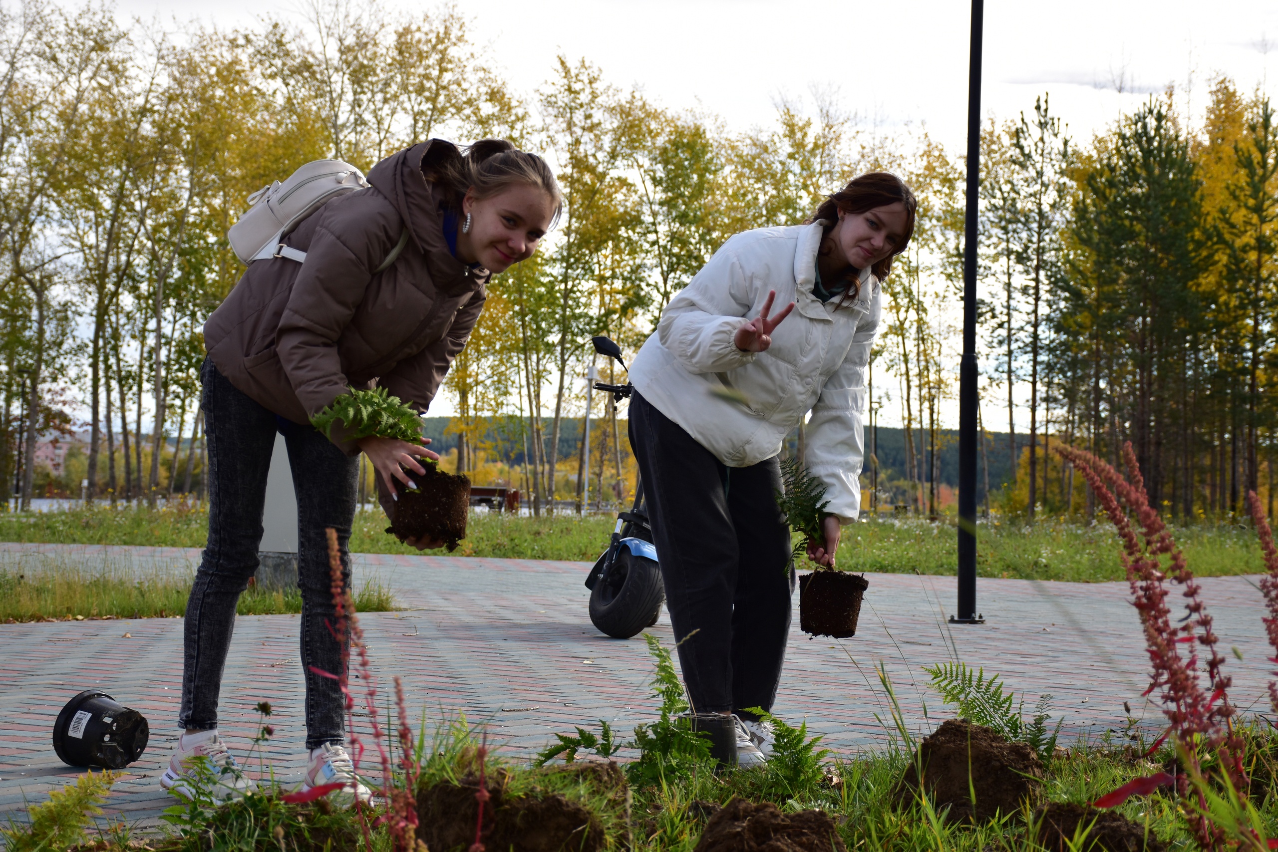 Активное участие в высадке кустарников приняли участие порядка 100 студентов политехникума. Юноши работали лопатами и носили воду, девушки — приземляли саженцы.