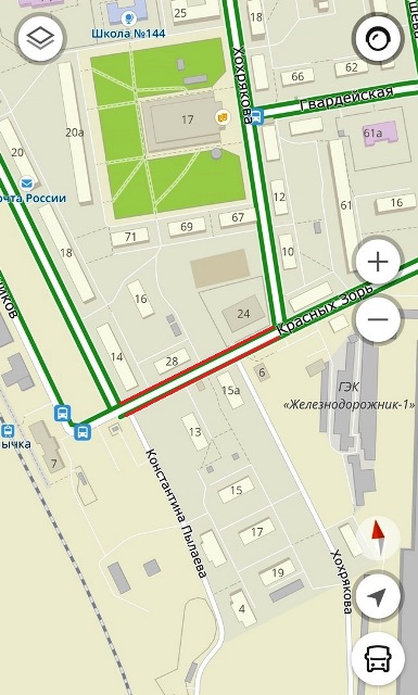 Участок улицы Красных Зорь, где нет тротуара / 2ГИС