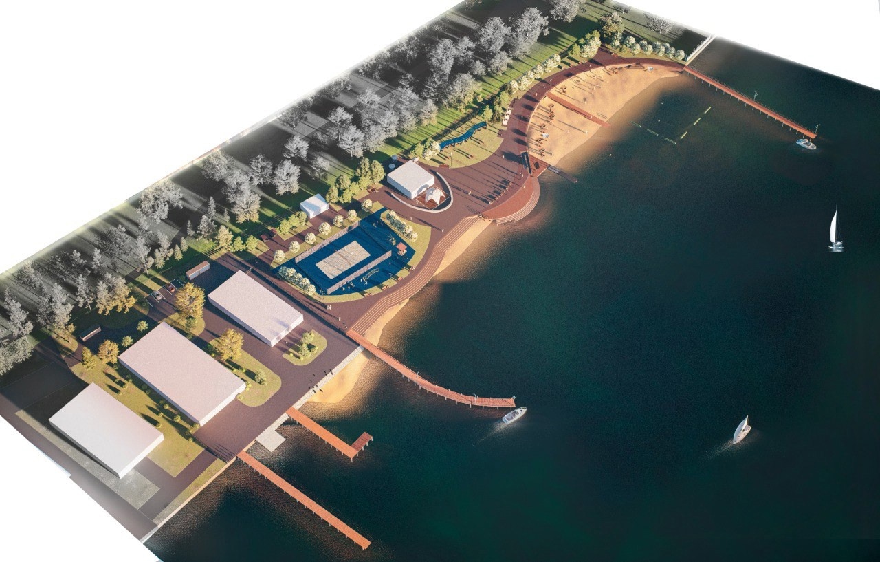 В соответствии с генпланом благоустройства, пляж будет разбит на несколько зон: зоны для семейного отдыха, спортивная и игровая площадки, зона тихого отдыха и, собственно, сам пляж.