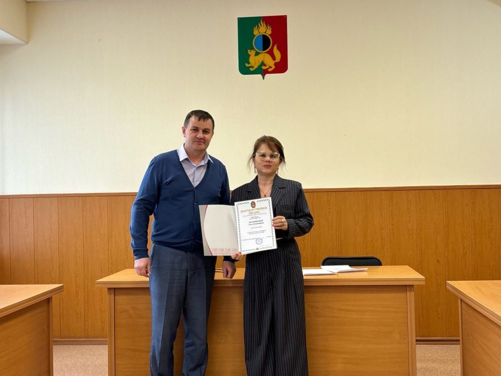 На комиссии заместитель Главы городского округа Первоуральск по взаимодействию с органами государственной власти и общественными организациями Виталий Тамман в торжественной обстановке вручил независимому эксперту Мельниковой Ольге Благодарственного письмо Главы городского округа Первоуральск за плодотворное сотрудничество в проведении антикоррупционной экспертизы проектов муниципальных нормативно – правовых актов в 2023 году.