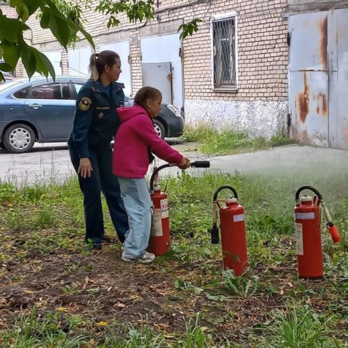 Работникам администрации была предоставлена возможность воспользоваться первичным средством пожаротушения огнетушителем. Выйдя на задний двор администрации, каждый желающий смог испытать работу воздушно-пенного огнетушителя.