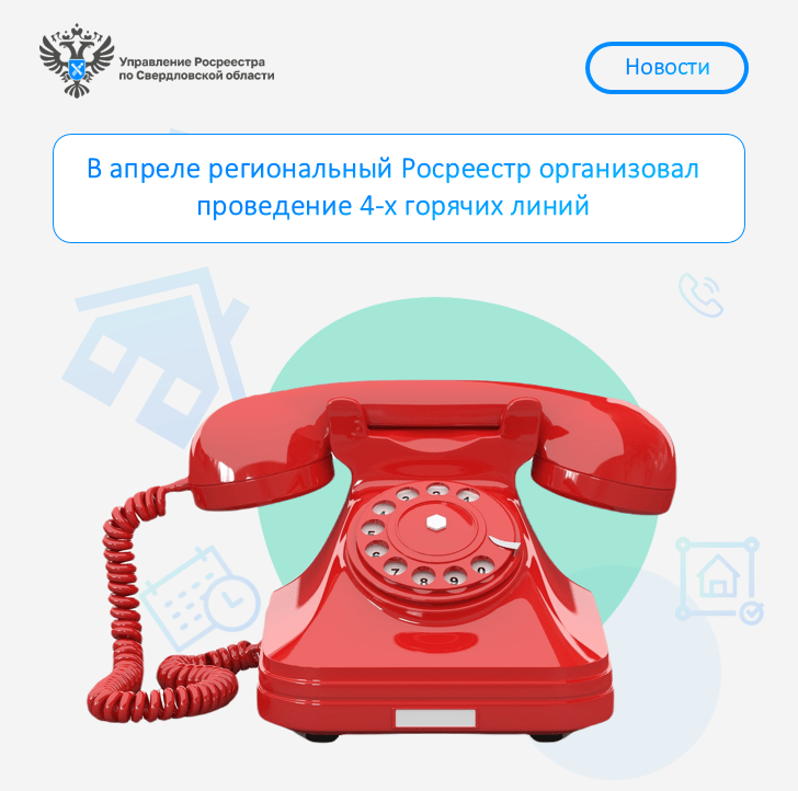 В апреле 2024 года сотрудники Управления Росреестра по Свердловской области и филиала публично-правовой компании «Роскадастр» по УФОпроведут для свердловчан горячие линиипо вопросам земли и недвижимости,
