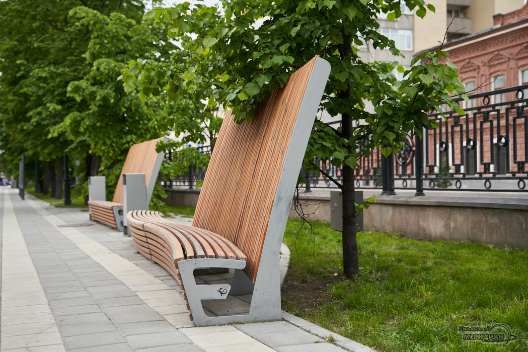 На отрезке от пр. Ленина до ул. Малышева появятся 70 скамеек для парочек «Ампир-2» и 104 3-х метровых деревянных «Берты». Для интровертов будут доступны 17 одноместных «Ампир-1».