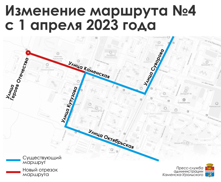 В Каменске-Уральском с 1 апреля изменится маршрут движения автобусов № 4. «Четверка» будут заезжать на остановку «Улица Героев Отечества» в обоих направлениях.