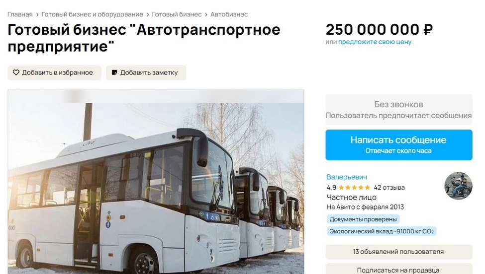 «Продаётся готовый бизнес, действующее автотранспортное предприятие. Предприятие успешно работает на рынке пассажирских перевозок города Нижнего Тагила более 20 лет и имеет в собственности все необходимые ресурсы», – сказано в объявлении.
