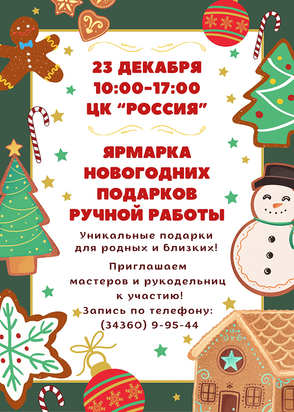 23 декабря с 10:00 до 17:00 Центр культуры «Россия» Вас ждут уникальные подарки для родных и близких!