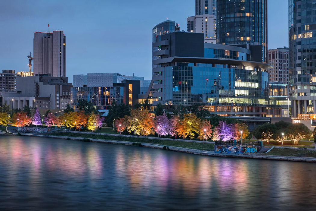 В Екатеринбурге вдоль набережной Исети открыли аллею цветных деревьев. Подсветка имеет несколько режимов свечения – будничный и праздничный, а также можно задавать любой цвет в зависимости от времени года. Такой подарок к 300-летию Екатеринбурга сделал «УГМК-Застройщик».