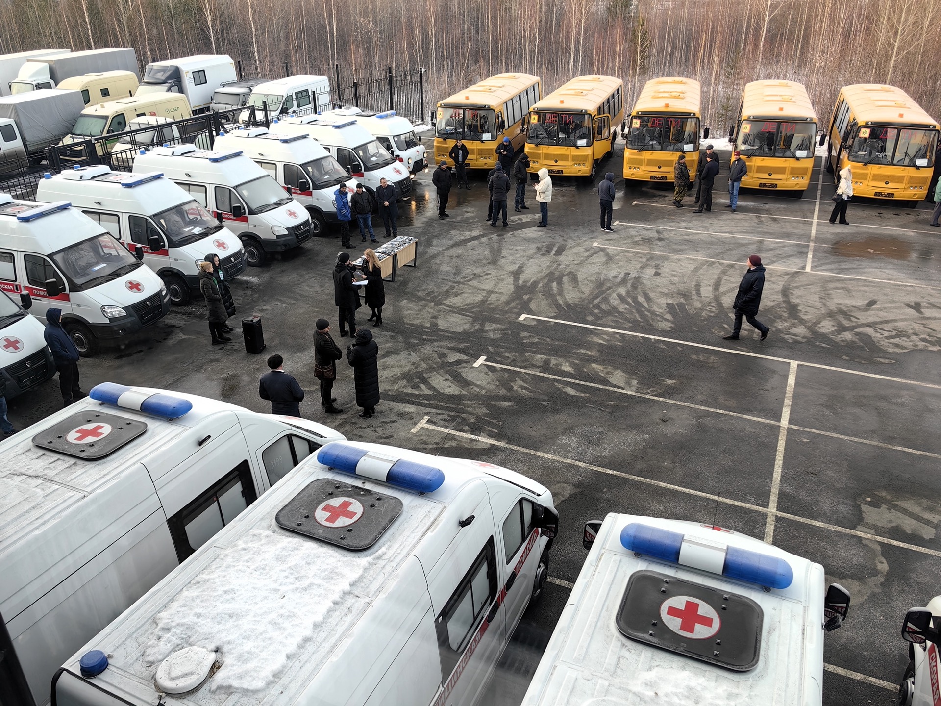 Торжественная церемония передачи 15 школьных автобусов и 17 автомобилей службы скорой помощи, которые будут использоваться в муниципалитетах региона, состоялась 10 ноября в Екатеринбурге.