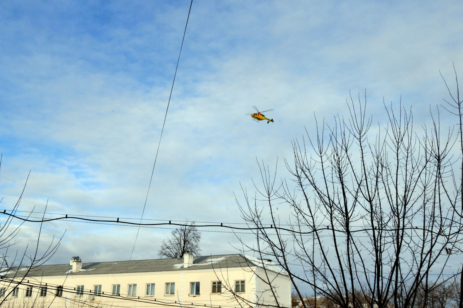 Во вторник, 24 января, в 14.20 часов на стадионе «Машиностроитель» приземлился желто-красный вертолет Центра медицины катастроф.