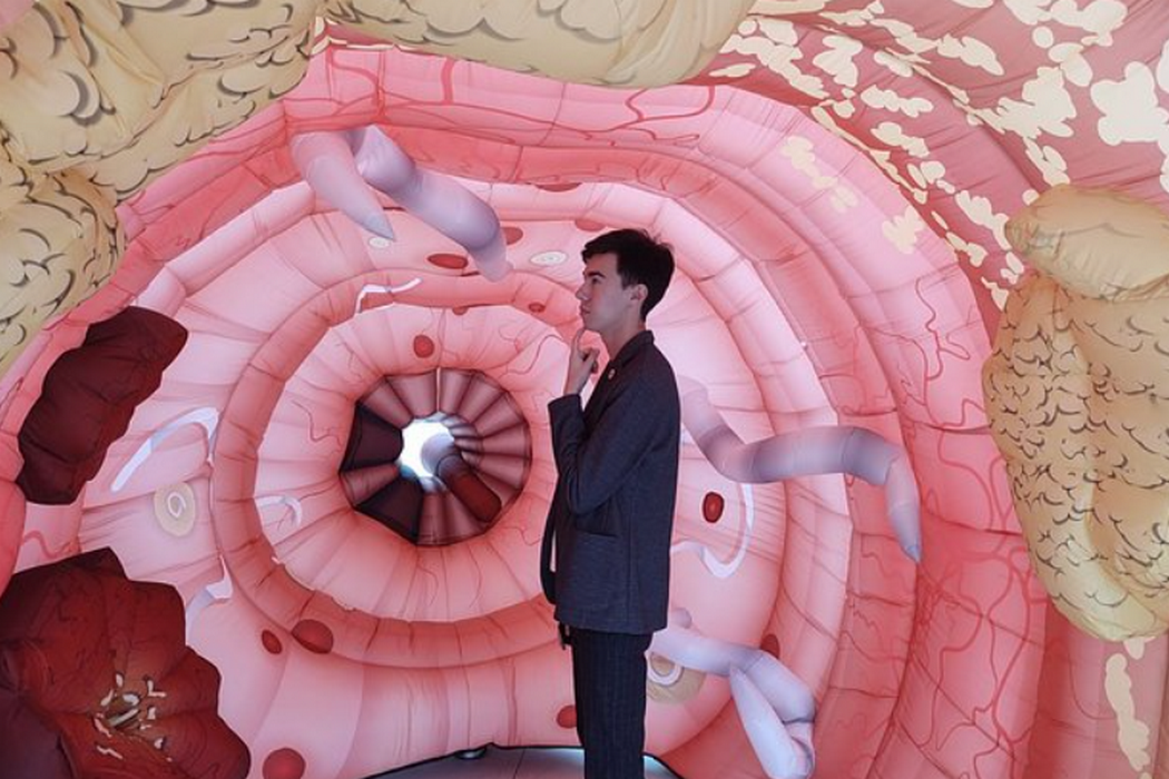 Можно пройти кишку насквозь и внутри в окружении сосочкой бляшек и еще чего-то фиброзного сделать фото на память. Кроме прямой кишки, есть макеты легких, сердца. Здесь же специалисты поликлиник проводят консультации, викторины и игры, чтобы в легкой форме приучить людей к профилактике.