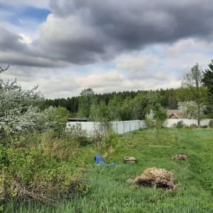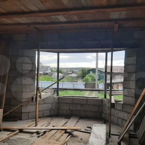 Второй дом новой постройки двухэтажный из пеноблока, размером 8*12м. На одном этаже спланирована гостиная 32 кв.м, кухня-столовая 26кв.м. , а на втором этаже две спальни размером 22 и 25 кв.м. , 2 санузла.